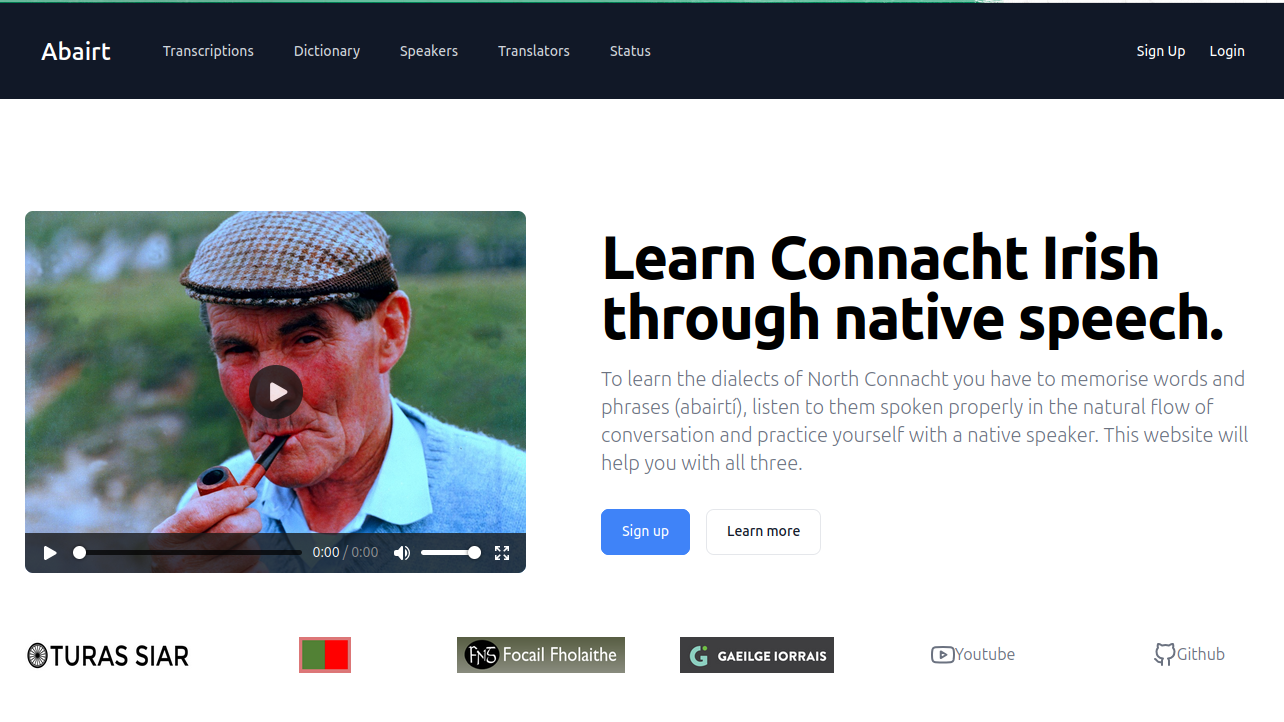 APIIn UseOn this pageIn UsePlease append any cases where our API is actively in use. abairt.ie Abairt Screenshot